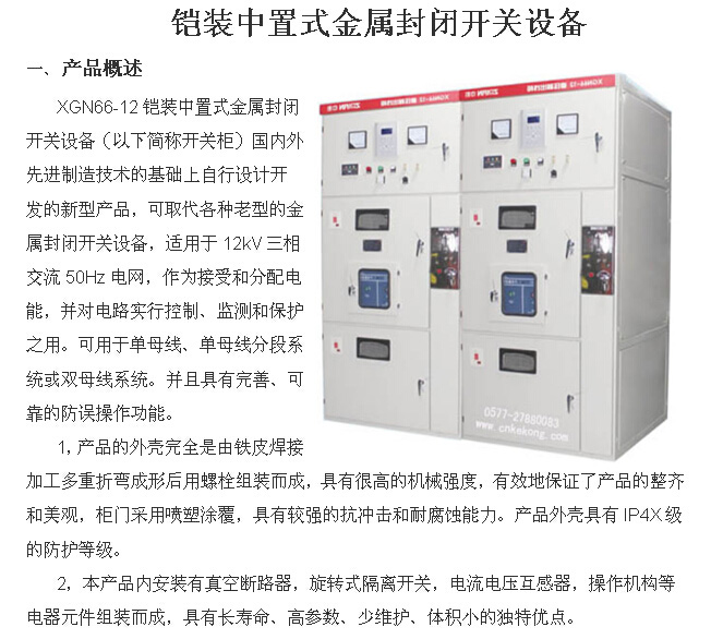 XGN66-12鎧裝中置式金屬封閉開關(guān)設(shè)備是國內(nèi)外先進(jìn)制造技術(shù)的基礎(chǔ)上自行設(shè)計開發(fā)的新型產(chǎn)品,可取代各種老型的金屬封閉開關(guān)設(shè)備,適用于12kV三相交流50Hz電網(wǎng),作為接受和分配電能,并對電路實行控制、監(jiān)測和保護(hù)之用。可用于單母線、單母線分段系統(tǒng)或雙母線系統(tǒng)。并且具有完善、可靠的防誤操作功能。
